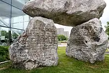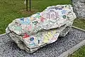 Une œuvre d'Armand Vaillancourt est installée au nord du pavillon. La sculpture — Drapeau blanc — est composée de treize pierres gravées d'empreintes humaines et de messages et disposées en forme de flèche pour rendre hommage aux autochtones.