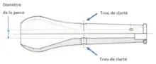 Le pavillon est généralement associé à un ou deux trous latéraux dans la partie basse de l'instrument, appelés trous de clarté ou trous de timbre ou trous d'accord[5].