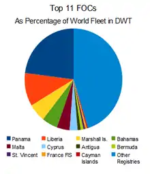 Ceux-ci sont, par ordre d'importance décroissante et selon la Lloyd : Belize (22 %), Honduras (21 %), Panama (11 %) et Taïwan (9 %).