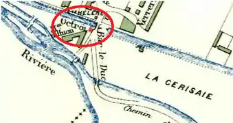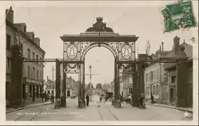 Le premier bâtiment de deux niveaux, sur la droite de la photo, est le bâtiment qui servait d’octroi puis devint un commissariat de police. Gravement endommagé pendant la Grande Guerre, il n’a pas été reconstruit[3].