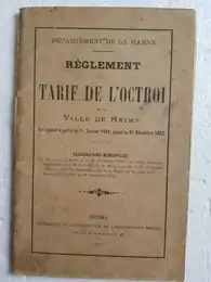 Les Octrois ont été mis en place afin de créer des recettes. Installés à l'origine aux portes de l'enceinte médiévale, ils ont été déplacés au fur et à mesure de l'évolution du périmètre des constructions de la ville de Reims.