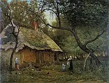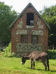 Abritée par cette haie qui crée un microclimat se trouve une cour complantée de pommiers pour la production du cidre ou de poiriers (présence d’un pressoir). La haie protège en outre le jeune bétail et la basse-cour. On trouve aussi une mare et des bâtiments d’exploitation et d’habitation (ferme). L’accès à la cour se fait par deux ou quatre portails qui correspondent le plus souvent aux points cardinaux[34]. L’évolution des modes de vie conduit à un arrachage ou un manque d’entretien des haies, ce qui accélère l’érosion des sols. Ayant un rôle de brise-vent, les talus plantés également freinent en effet l’écoulement des eaux de pluie. Avec la croissance démographique du XVIIIe siècle, les clos-masures ont fini par former des hameaux, eux-mêmes entourés de haies. Le paysage du pays de Caux ne doit pas être confondu avec le bocage du pays de Bray voisin.