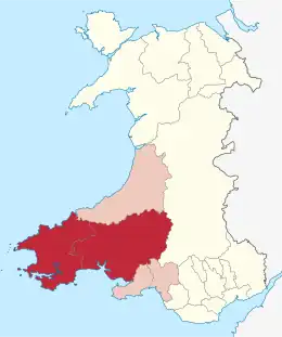 - Étendue (Carmarthenshire, Ceredigion, Neath Port Talbot, Pembrokeshire et Swansea)