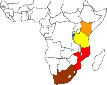 Carte illustrant la lutte du Burundi (en bleu) à trouver une voie d'exportation appropriée.