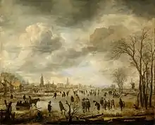 - Jean Van Goyen, Patineurs devant un château médiéval, 1637, 42 × 57 cm, Musée du Louvre