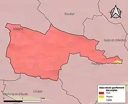 Le retrait-gonflement des sols argileux est susceptible d'engendrer des dommages importants aux bâtiments en cas d’alternance de périodes de sécheresse et de pluie. La totalité de la commune est en aléa moyen ou fort (75,2 % au niveau départemental et 48,5 % au niveau national). Sur les 82 bâtiments dénombrés sur la commune en 2019, 82 sont en aléa moyen ou fort, soit 100 %, à comparer aux 94 % au niveau départemental et 54 % au niveau national. Une cartographie de l'exposition du territoire national au retrait gonflement des sols argileux est disponible sur le site du BRGM[20],[Carte 3].