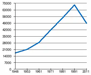 | 1961 | 41 532 | 62,35 | 8 852 | 12 701 | 728 | 1 397 | 2,1 | 66 656 | |||||