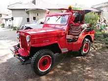 Véhicule de lutte contre l'incendie équipé d'une pelle et d'une pioche (à l'avant).