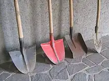 - la pelle à charbon, à manche court pour l'alimentation des poêles et à manche long pour le chargement des chaudières : bateaux, locomotives, chaudières industrielles.