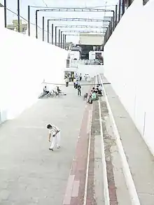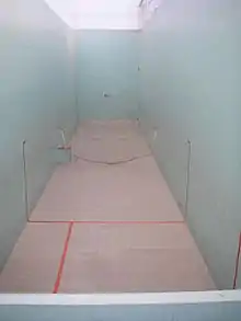 C’est sans doute le lieu le plus adapté à ce sport. C’est une enceinte fermée de forme rectangulaire faisant environ 40 à 60 mètres de long et 9 à 11 mètres de large. La piste s’appelle la « cancha ». Les deux murs les plus larges ont une hauteur égale à la largeur de l’enceinte. Une des deux parois est équipée de quatre gradins réservés au public : l’escalier ou gradins. La première marche, plus haute que les autres fait un mètre de haut et deux à deux mètres cinquante de large[1].