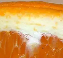 Les agrumes, aussi appelés hespérides, possèdent une anatomie particulière. Le péricarpe et le mésocarpe sont fusionnés pour former l'écorce. La partie externe de la pelure (également appelée le flavédo[1]) est de couleur orange, c'est le péricarpe. La partie interne (également appelée albédo) est blanche, c'est le mésocarpe. L'endocarpe enveloppe chaque segment de l'agrume.