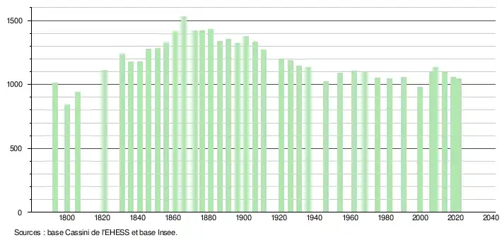 Le maximum de la population a été atteint en 1866 avec 1 533 habitants.