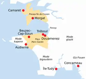 - La moitié nord de Guiler-sur-Goyen (la moitié sud est bigoudène).
