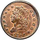 De 1808 à 1857, s'impose le cent appelé « Classic Head » (tête classique) : conçu à l’origine par le graveur John Reich, il fut révisé en 1816 par Scot puis en 1840 par Christian Gobrecht, qui s'inspira d'un dessin du peintre Titian Peale. L'avers montre, entourée des 13 étoiles des premières colonies indépendantistes, la tête de la Liberté de profil, tournée vers la gauche et portant un diadème sur lequel est inscrit le mot « Liberty » ; au revers, la fraction 1/100 finit par disparaître en 1816. Les tirages sont de plus en plus importants, avec des pointes à plus de 6 millions d'unités en 1838, puis à près de 10 millions en 1851.