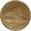 Le Flying Eagle (aigle volant) n'a été frappé que jusqu'en 1858 : conçu par James B. Longacre, il montre à l'avers un pygargue à tête blanche saisi durant son vol entouré de la mention « United States of America » et de la date ; au revers la mention « One cent » entourée d'une couronne de feuillage et de fleurs. Cet « aigle », Longacre put le dessiner en s'inspirant d'un pygargue domestiqué surnommé « Peter » qui vivait dans les locaux de l'US Mint. Plus de 40 millions d'unités furent frappées.
