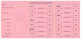 Le test de connaissance peut être commun aux différentes catégories de permis de conduire[2].