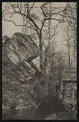 Les Étangs des Salles : troisième étang et ruines du château des Salles (vers 1905).