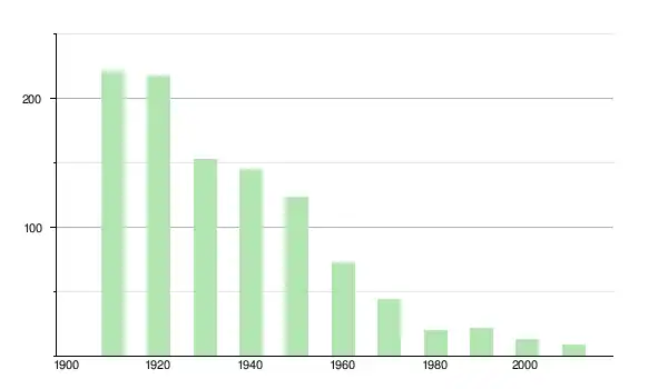 | 1920 | 218 | ▼ −1,36 % | |