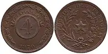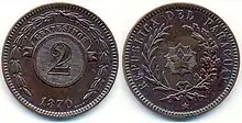En 1870, le Trésor reprend la production du papier-monnaie et émet les seuls billets libellés en centésimos, pour une valeur de 50 centésimos. Les billets en peso étaient libellés en « peso fuerte ». Des billets libellés en réaux ont été émis jusqu'en 1871. En 1874, des billets de 10, 20 et 50 centavos ont été émis, et des billets de 20 pesos ont été introduits en 1875.
