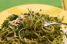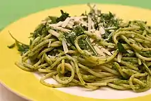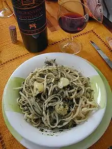 En Italie, il est normalement utilisé dans les primi piatti (entrée), comme les gnocchis de pommes de terre, le minestrone alla genovese (soupe de légumes) et les pâtes, du genre des trofie, bavette (également appelé trenette), linguine, corzetti, tagliatelles, tagliolini ou lasagne[9], et le risotto.