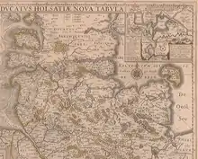 Carte des détroits du Danemark avec le Petit Belt (Lillebælt) entre le Jutland (Jylland) et la Fionie (Fyn). | ||