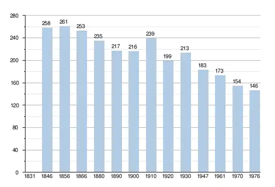 - Source: DGS, 1831 à 1970=recensements population, 1976= habitants au 31 décembre