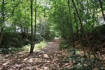 La promenade de la Petite Ceinture du 16e arrondissement, dans sa partie boisée. | |