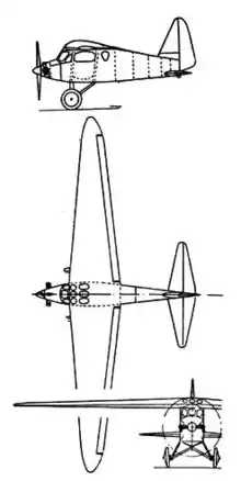 La voilure de 10 m d'envergure est réalisée d'un seul tenant. Elle est fixée à la cellule par quatre boulons (ce qui permet de la remettre dans l'axe pour faciliter le transport)[1].