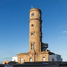 Le phare de Gatteville, construit par l'architecte Charles-Félix Morice de la Rue, avec 11 000 blocs en granit rose de Fermanville[11], pesant au total 7 400 tonnes, est une haute tour cylindrique de 74,85 mètres, ce qui en fait le second plus haut phare d'Europe[12]. Sa tour, construite au centre d'un soubassement de deux niveaux, a un diamètre à la base de 9,25 mètres et de 6 mètres à la passerelle.