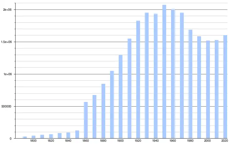 Selon le bureau du recensement des États-Unis, la ville de Philadelphie (Philadelphia City) compte 1 603 797 habitants dans ses limites en 2020[1], ce qui en fait la sixième ville la plus peuplée du pays après New York, Los Angeles, Chicago, Houston et Phoenix. Avec 6 245 051 habitants, l'aire métropolitaine de Philadelphie (Philadelphie–Camden–Wilmington ; PMSA) constitue la septième agglomération des États-Unis[2].