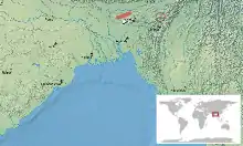 Aire de répartition de l'espèce Philautus garo selon l'UICN (consulté le ).