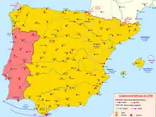 Carte de la guerre de succession d'Espagne en 1706.