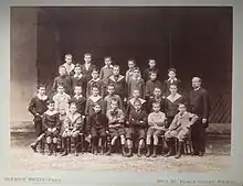 La photo de classe en tant que telle apparaît, en France, et simultanément dans la plupart des pays occidentaux et leurs colonies, au plus tôt au début des années 1860[1], au moment où les progrès techniques de la photographie ont pu suffisamment raccourcir les temps de poses pour permettre d'obtenir une netteté convenable. Les prises de vue sont faites en extérieur pour exploiter au mieux la lumière du jour. Une des photos les plus célèbres, celle de la classe de l'élève Arthur Rimbaud à l'institution Rossat de Charleville, est datée de 1864.