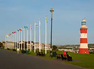 Photographe se spécialisant dans le monde du jazz et de la musique populaire[100], David Redfern (en) a souvent photographié les Beatles[101]. Il a été attitré (avec John Kelly [102]) pour le tournage du film Magical Mystery Tour. Le 12 septembre 1967[103], il a pris une photo du groupe assis dans l'herbe du parc Plymouth Hoe, devant la tour Smeaton à Plymouth dans le comté du Devon. La ville a dévoilé, le 18 novembre 2015, une sculpture pour commémorer le passage du groupe. On y installa les traces de leurs postérieurs, de leurs jambes, de leurs pieds et de leurs mains, moulées dans du cuivre, à l'endroit exact pour que les passants puissent s'y asseoir et reproduire cette célèbre photographie[104].