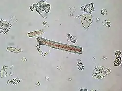 - dans les fossiles d'excréments (coprolithes, dont ceux de dinosaures)