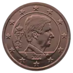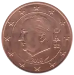 Effigie de Philippe (1960- ), Roi des Belges, tournée vers la droite. À gauche, le monogramme royal de Philippe au-dessus des lettres BE représentant le pays émetteur. Sous l'effigie, le millésime. Le tout est entouré des 12 étoiles du drapeau européen dans un anneau.