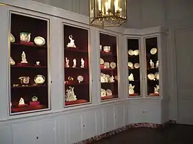 La seconde pièce des buffets a aussi servi pour les fameuses ventes privées de porcelaine organisées par Louis XV dans son petit appartement chaque décembre pour promouvoir les productions de la manufacture royale, deux siècles et demi avant que les ventes privées ne deviennent une pratique courante. Après 1769, elles se tinrent dans la salle à manger aux Salles Neuves[6], dont on utilisait l'imposante table d'acajou, dans la pièce des buffets voisine et même dans le salon des Jeux vidé de son mobilier, à l'exception de la grande table centrale. Les ventes de biscuits de Vincennes et Sèvres faisaient partie de ce rituel[7].