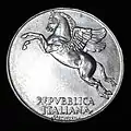 | Avers : L'inscription « repvbblica italiana » et Pégase | Revers : Branche d'olivier, valeur faciale et l'année | ||||
