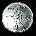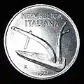 | Avers : L'inscription « repvbblica italiana » et une tête de couronnée | Revers : Vulcain travaillant à l'enclume, valeur faciale et l'année | ||||