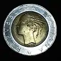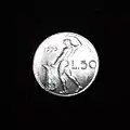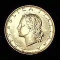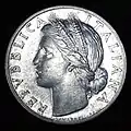 | Avers : L'inscription « repvbblica italiana » et Italia turrita (figure allégorique féminine personnifiant l'Italie) | Revers : Mouette, épi de maïs, dauphin, rameau d'olivier, valeur faciale et l'année | ||||
