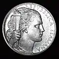 | Avers : L'inscription « repvbblica italiana » et une tête de couronnée | Revers : Minerve, arbre de laurier, valeur faciale et l'année | ||||