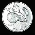| Avers : Tête de Cérès décorée de pointes entourée de l'inscription « repvbblica italiana » | Revers : Orange avec sa branche avec en dessous : l'année, la valeur et la marque d'atelier | ||||