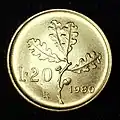 | Avers : L'inscription « repvbblica italiana » et une tête couronnée | Revers : Branche de chêne, valeur faciale | ||||