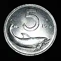 | Avers : L'inscription « repvbblica • italiana » et un gouvernail de navire | Revers : Dauphin, valeur faciale et l'année | ||||