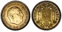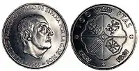 26.50 | 8,50 g | la valeur faciale 25 PTAS à côté des grandes armoiries de l'Espagne franquiste sur un aigle | ||||