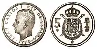 23.00 | 5,50 g | cupronickel | la valeur faciale 5 PTAS autour des armoiries de l'Espagne | |||