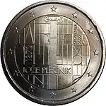 C'est la première fois que la Slovénie reprend l'iconographie du régime communiste yougoslave sur une pièce de monnaie[6]. | ||||||