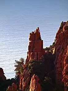 Le site naturel protégé de Capu Rossu[33] occupe l’extrémité sud de la façade maritime du parc naturel régional de Corse, Capu Rossu étant la pointe sud du golfe de Porto.