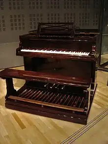 Il permet de jouer certaines notes sans avoir recours à une soufflerie, mais par simple dispositif mécanique, les pédales enfonçant les touches du piano. En cela, cet instrument est l'héritier du clavicorde à pédalier ou du clavecin à pédalier[2]. C'est effectivement de ces instruments plus anciens et moins complexes que dérive le piano à pédalier, instruments qui ont autrefois beaucoup servi aux organistes pour travailler sans mobiliser un souffleur (avant l'électricité qui a mécanisé les souffleries) mais qui ont également donné lieu à des pièces composées spécifiquement pour l'instrument, aujourd'hui souvent jouées à l'orgue : les sonates en trio de Bach en sont un exemple particulièrement remarquable.