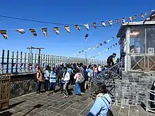 Les pèlerins de ces différentes religions, et même des chrétiens, gravissent ainsi les milliers de marches (entre 5 200[2] et 5 500[3]) qui mènent au sommet afin de vénérer cette relique. Cette ascension dure plusieurs heures et se fait généralement entre les mois de décembre et d'avril ou mai[2]. Les pèlerins — auxquels se mêlent souvent de nombreux touristes — partent tôt, de façon à l'atteindre pour le lever du soleil, ce qui permet de voir également la forme triangulaire de l'ombre produite par le sommet balayer la campagne environnante.